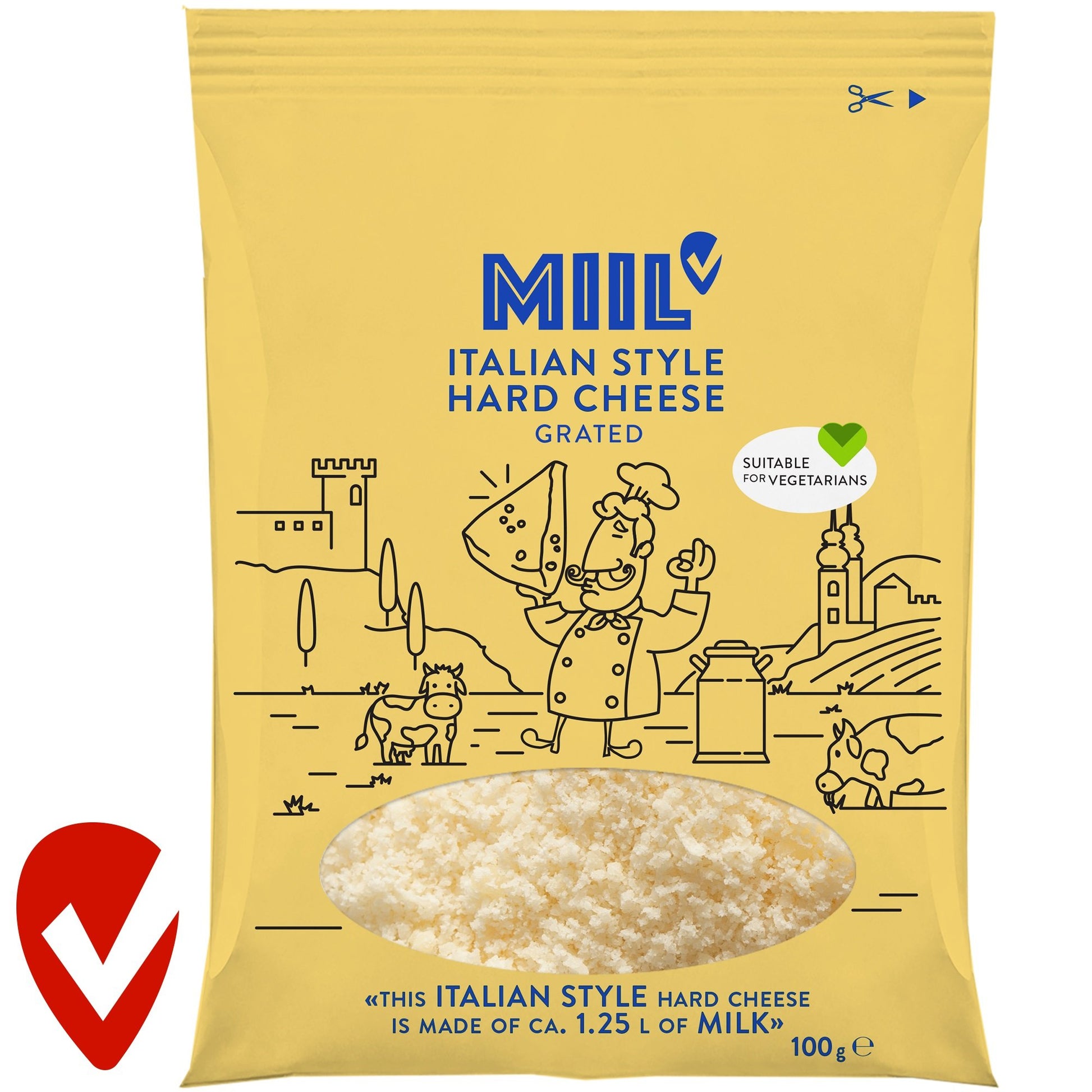 Miil reszelt kemény sajt - Félzsíros, kemény és félig főtt sajt, hosszú és lassú érleléssel. Termizált tehéntejből készül, amely napi két fejésből származik. A termék a növényi oltó használata révén vegetáriánus étrendhez is alkalmas.